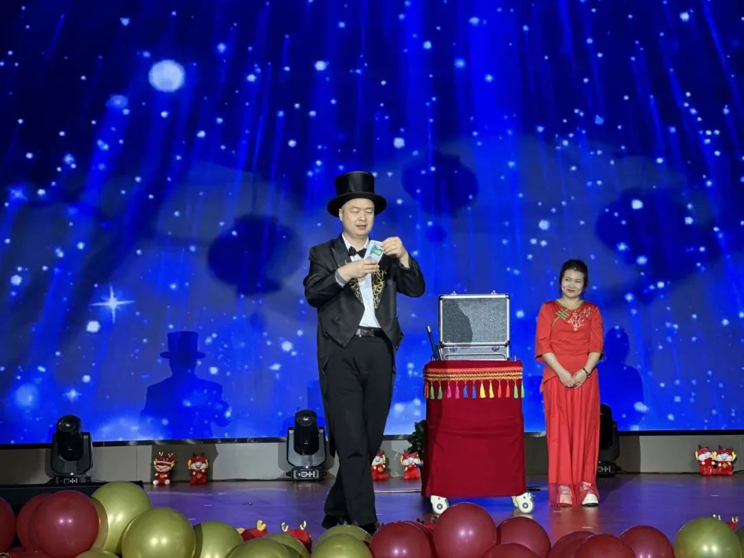 在這辭舊迎新的美好時刻,燕達(dá)養(yǎng)護中心領(lǐng)導(dǎo)班子與工作人員同臺表演,為大家呈現(xiàn)了一場精彩絕倫的視聽盛宴。舞蹈《少女時代》展現(xiàn)了青春的魅力和夢想的力量,象征著燕達(dá)人永遠(yuǎn)熱情、活力滿滿為長輩提供服務(wù)的精神風(fēng)貌;歌曲《就戀這把熱土》深情演繹出了對這片“土地”的無限熱愛,表達(dá)了燕達(dá)人對養(yǎng)老事業(yè)的堅守和執(zhí)著;古典舞《霓裳羽衣舞》仿佛帶我們穿越到了盛世大唐,盡享古典舞蹈的韻味和魅力;花樣百出的魔術(shù)表演將現(xiàn)場氛圍推至高潮,臺下觀眾的歡呼聲和掌聲此起彼伏。