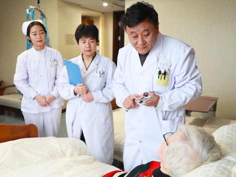 養護中心內設置的老年病科配備了腦科醫生、心臟科醫生、骨科醫生、婦科醫生、心理醫生、全科醫生和中醫醫生等,可對長者的慢性病、常見病、一般性疾病等進行診療;每年定期為長者免費體檢,建立健康檔案,并制定合理的健康管理方案。醫護人員24小時值班在崗,長者發生重大、突發性疾病時可第一時間對接燕達醫院,為長者贏取黃金救治時間。